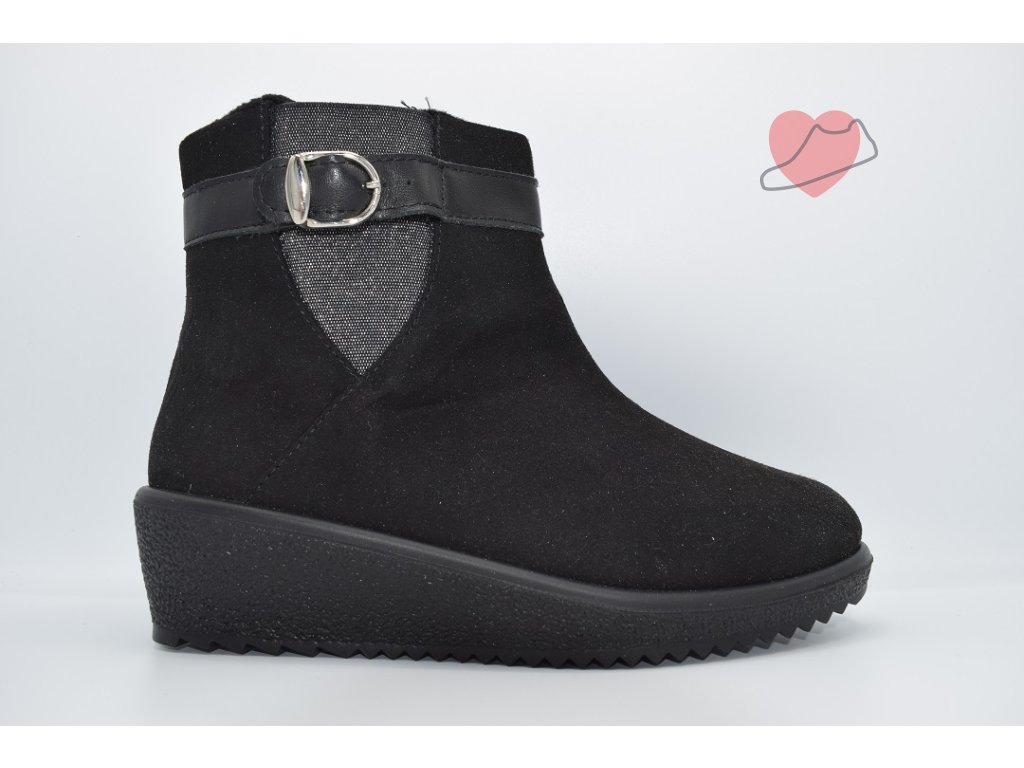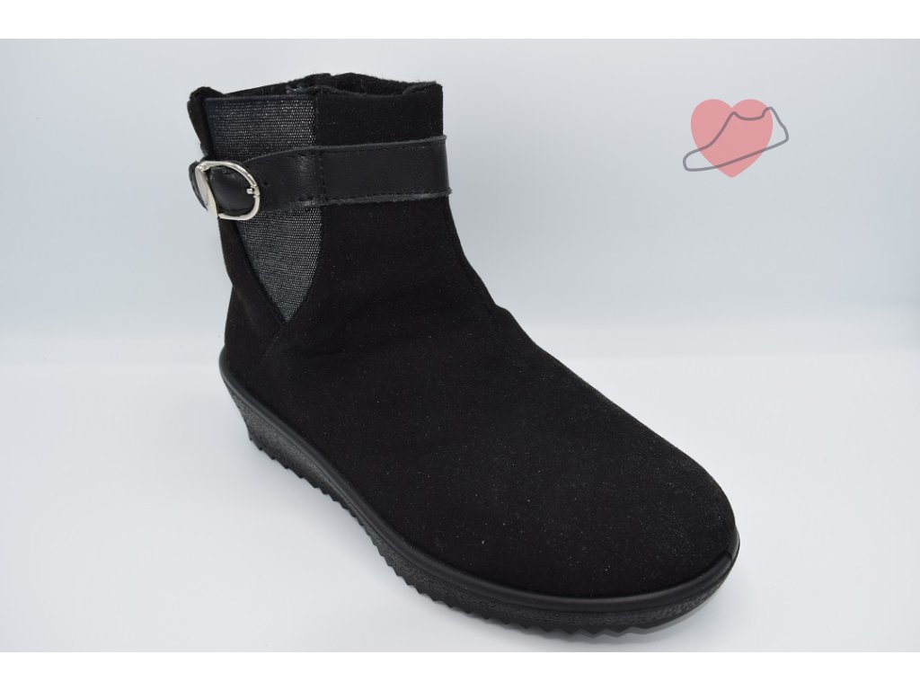 Dámská vyšší kotníková obuv s kvalitním textilním svrškem na pohodlné a pružné podešvi. Obuv je zdobena přezkou a je určena pro širší chodidla.