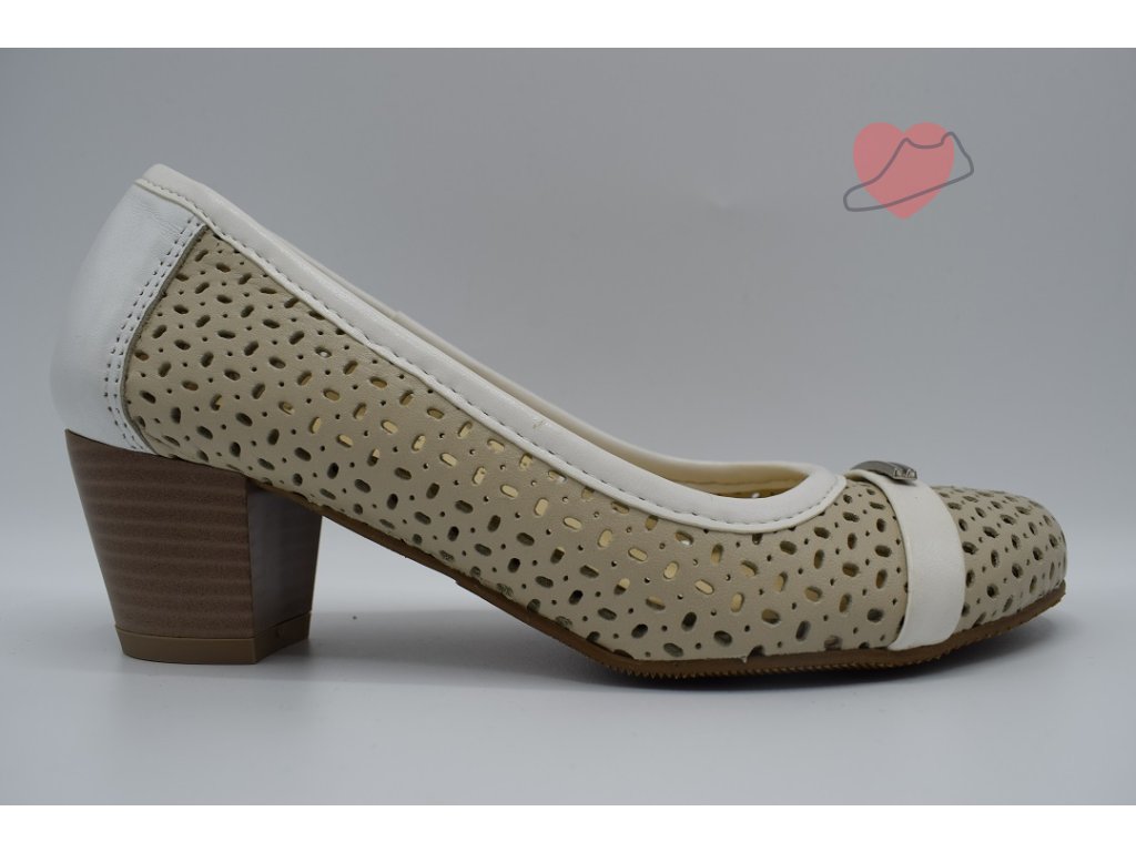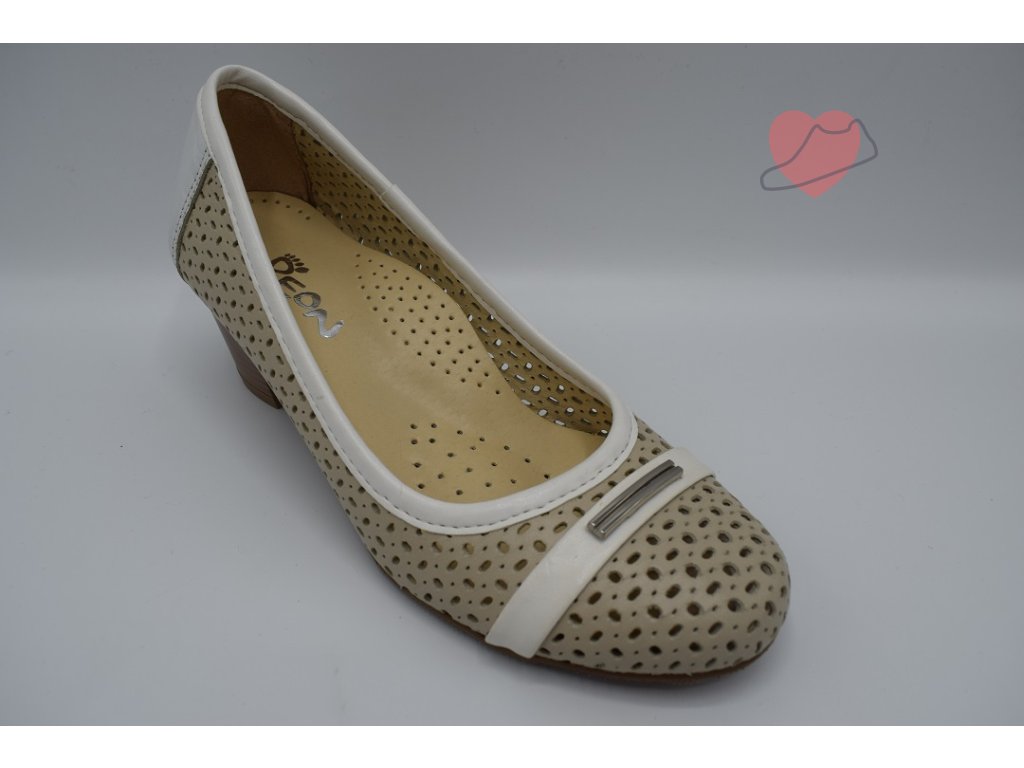 Dámské lodičky s perforací na nižším a stabilním podpatku pro pohodlné nošení bez bolesti nohou. Velmi měkká kůže je pohodlná pro celodenní chůzi. Uvnitř obuvi najdeme vyměkčenou celokoženou stélku s podporou příčné a podélné klenby. Nadčasový střih obuvi se dokonale hodí k formální šatům i ke kalhotám.