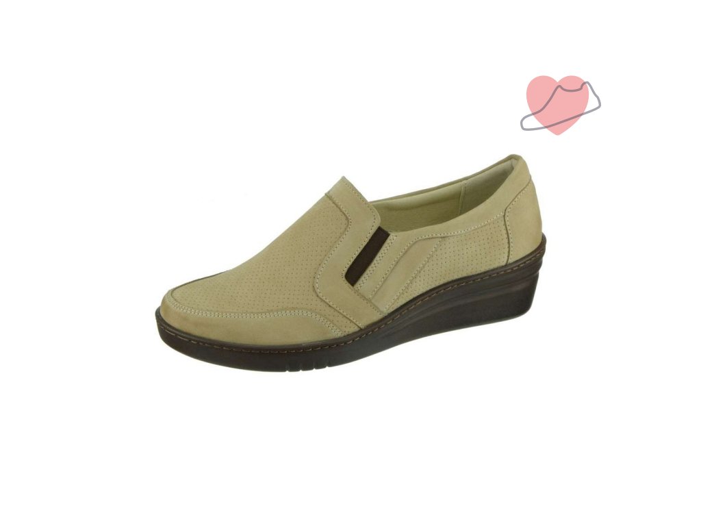 Dámské mokasíny z kvalitní 100 % přírodní kůže s prvky pro podporu klenby. Podešev je na mírném klínovém podpatku. Gumičky po stranách pro pohodlné obouvání. Pohodlná stylová obuv se zvýšeným zdravotním účinkem.