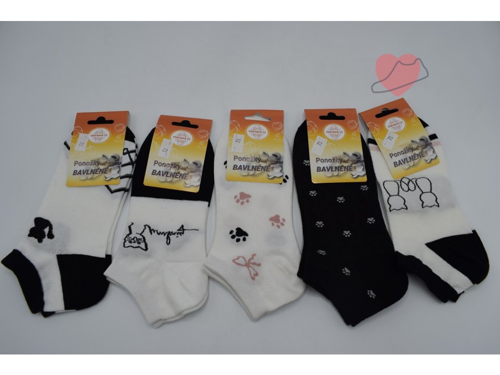 Dámské bavlněné kotníkové ponožky GL 601 kočka