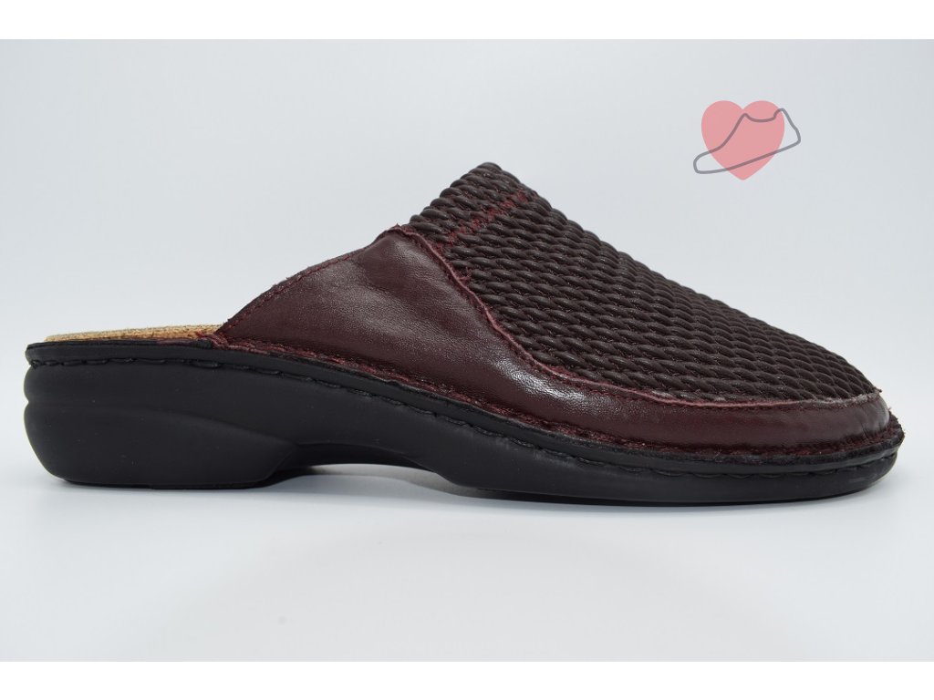 Speciálně navržené pantofle, se svrškem jak z pravé kůže, tak z pružné tkaniny. Tento model má téměř celou svrchní část pružnou, takže vám nejen omezí tlak na bolavý halluxový kloub, ale díky plné špici schová např. kladívkové prsty či jinak deformované a bolavé.