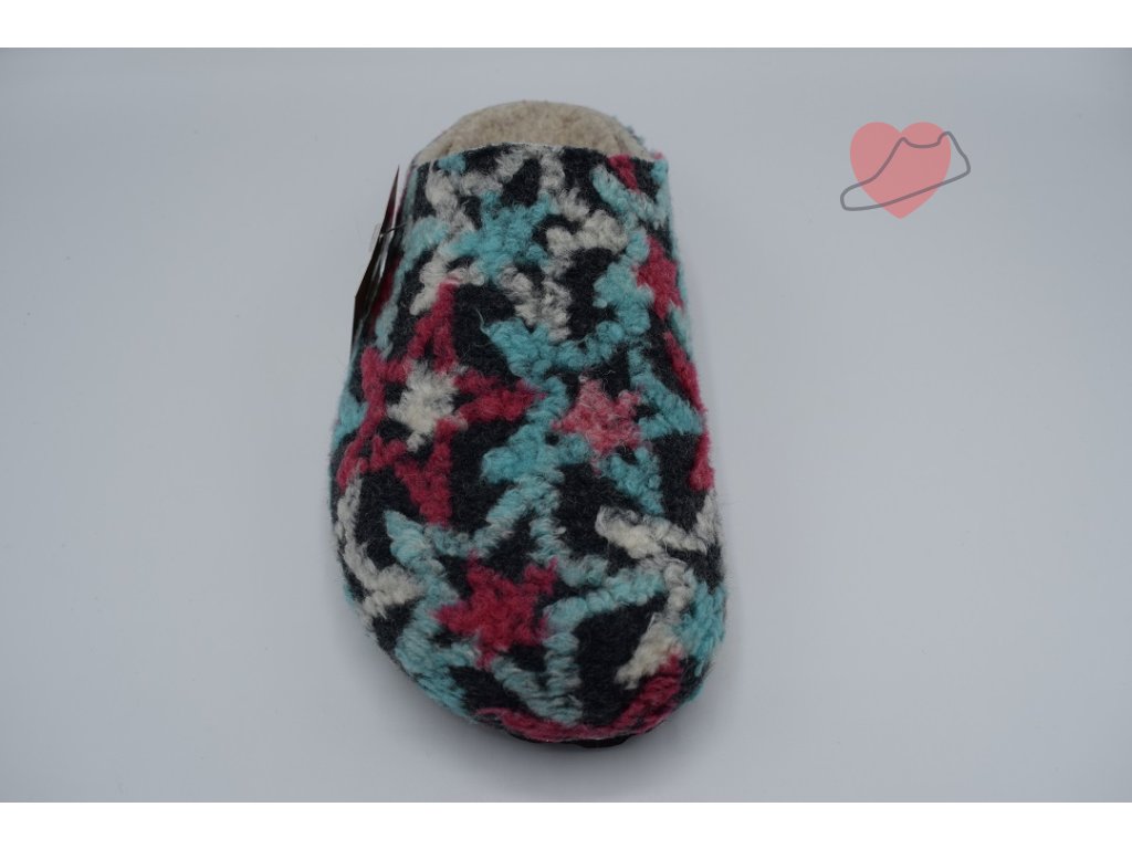 Dámský domácí plstěný pantofel pestrých barev s plnou špičkou. Anatomicky tvarovaná stélka.