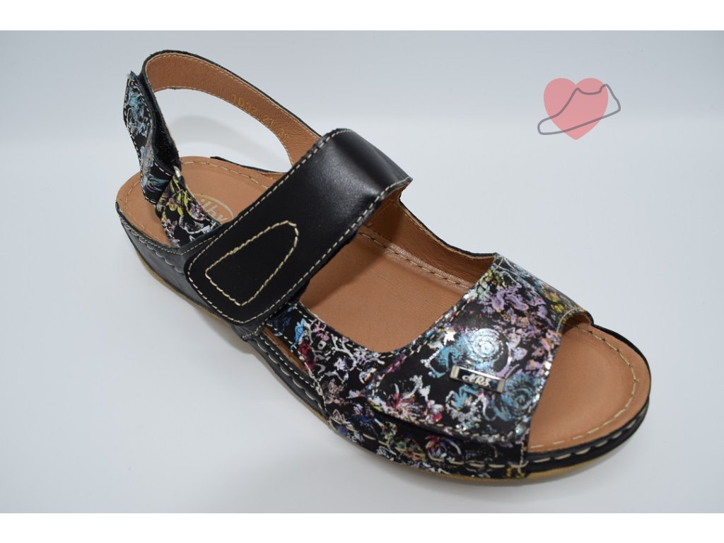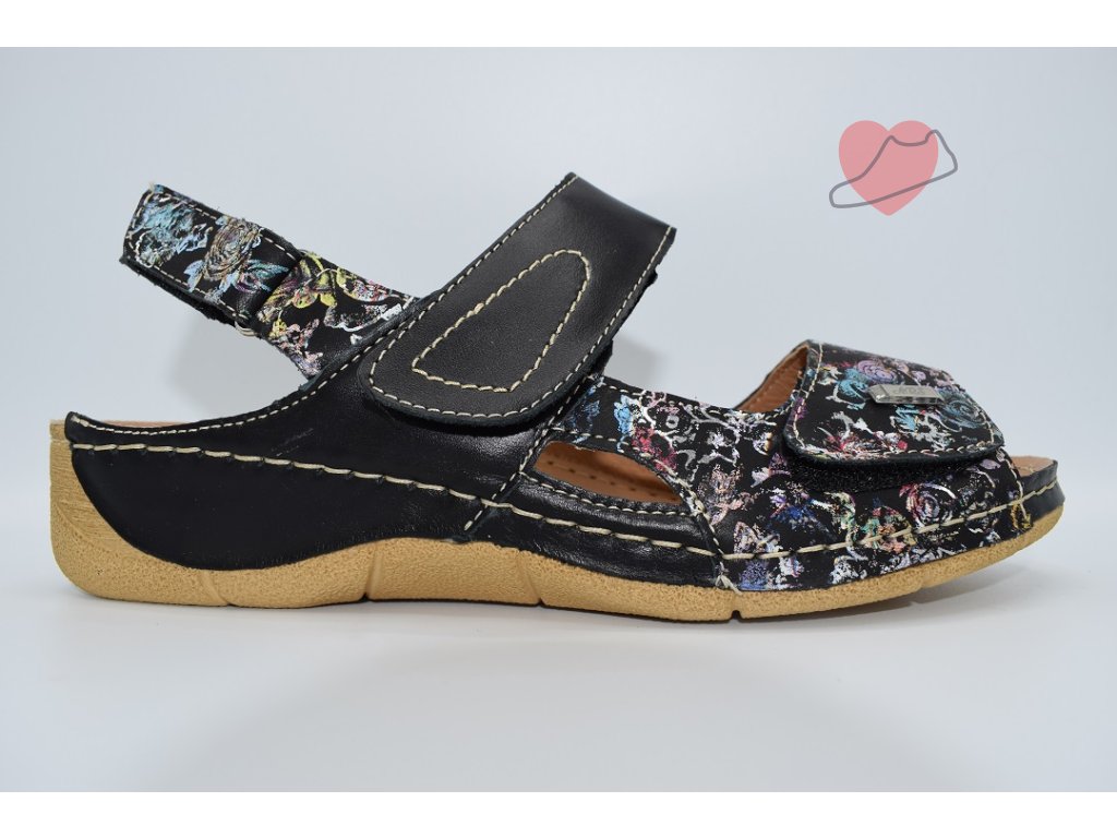 Dámské kožené sandály na mírně vyvýšené podešvi s otevřenou špičkou, na suchý zip. Boty jsou vybavené anatomicky tvarovanou stélkou potaženou kvalitní kůží.