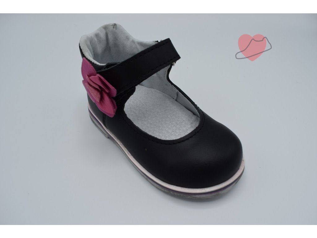 Dětská dívčí balerínka. Opora paty a široká špička zajistí dostatečný komfort a prostor pro rozvoj dětské nohy. Výprodej starších kusů obuvi. U některých bot zevnitř lehce vidět lepidlo, zohledněno v ceně.
