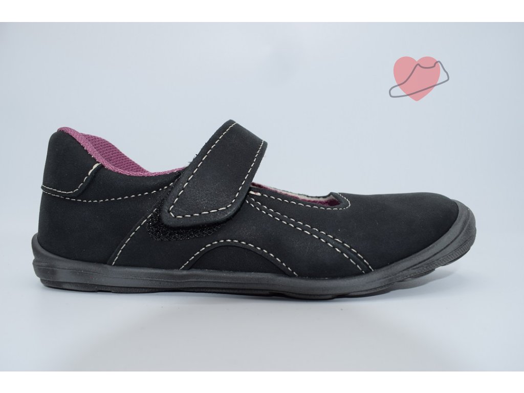 Dětská dívčí balerínka černé barvy. Opora paty a široká špička zajistí dostatečný komfort a prostor pro rozvoj dětské nohy.