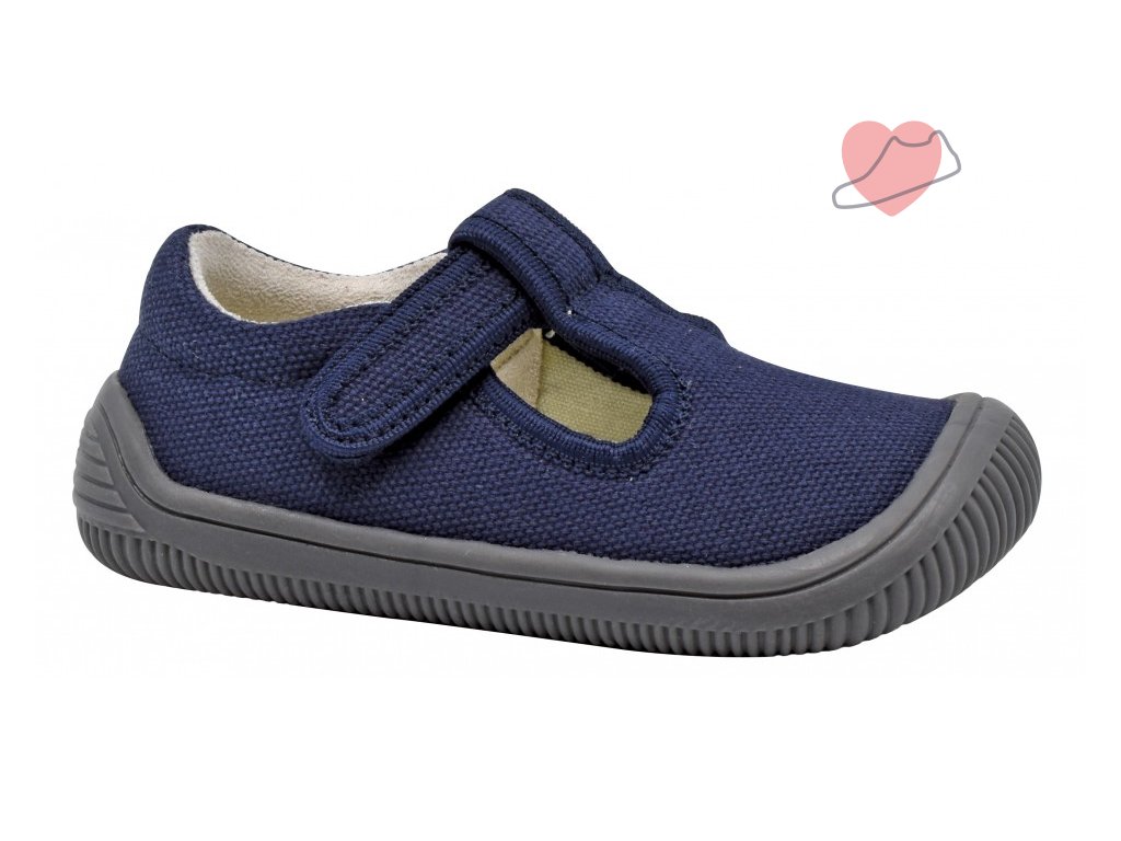 Plátěná barefootová obuv pro kluky. Zapínání na suchá zip. Špice je chráněna proti okopu. Obuv lze využít jako letní plátěnky nebo jako přezůvky do školky, školy nebo na doma. Bačkory jsou opatřeny barefoot podrážkou, která zajišťuje o co největší komfort dětí při chůzi. Přírodní prodyšný materiál obuvi garantuje zdravotní nezávadnost.