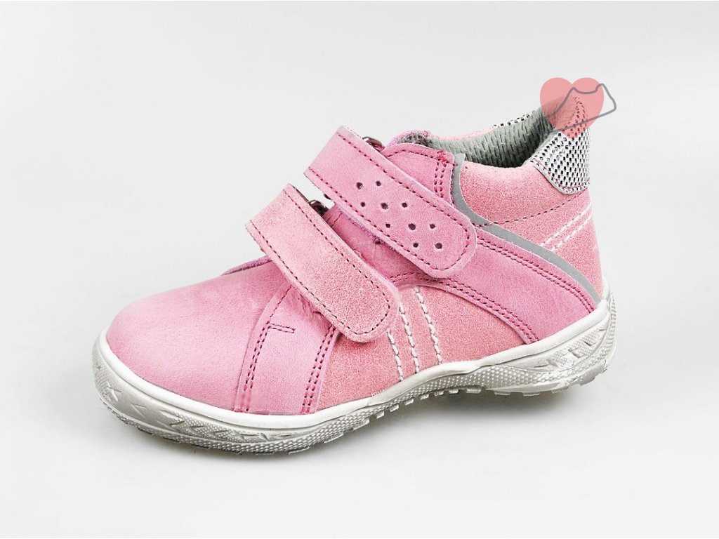 Celoroční kožené boty pro holky se zapínáním na dva suché zipy. Boty mají pevný opatek. Špice je chráněna proti okopu.