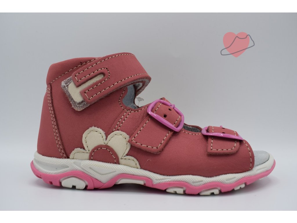 Dívčí sandály regulovatelné na dvě přezky a suchý zip. Otevřená špička zajistí odvětrání nohy a pevná pata zabezpečí dostatečnou oporu pro její rozvoj. Sandály jsou vypolstrované a mají koženou stélku s podporou klenby.
