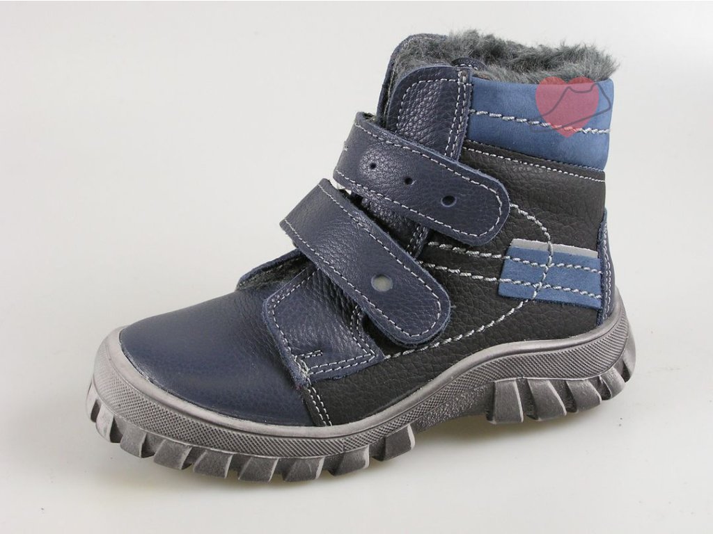 Chlapecké vyšší zimní boty se zapínáním na dva suché zipy. Svršek je vyroben z pravé kůže. Obuv je zateplená a má vyjímatelnou stélku. Zvýšená špička chrání obuv proti okopu. Tvar obuvi podporuje správný vývoj chodidla Vašeho dítěte. Špice je z broušené kůže.