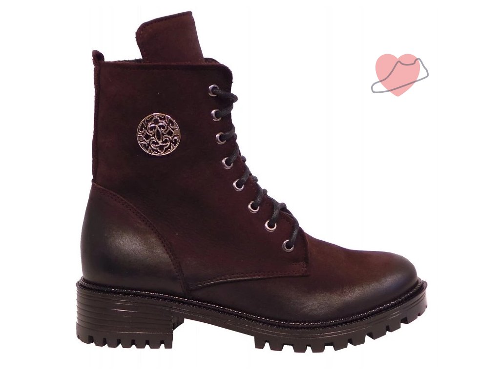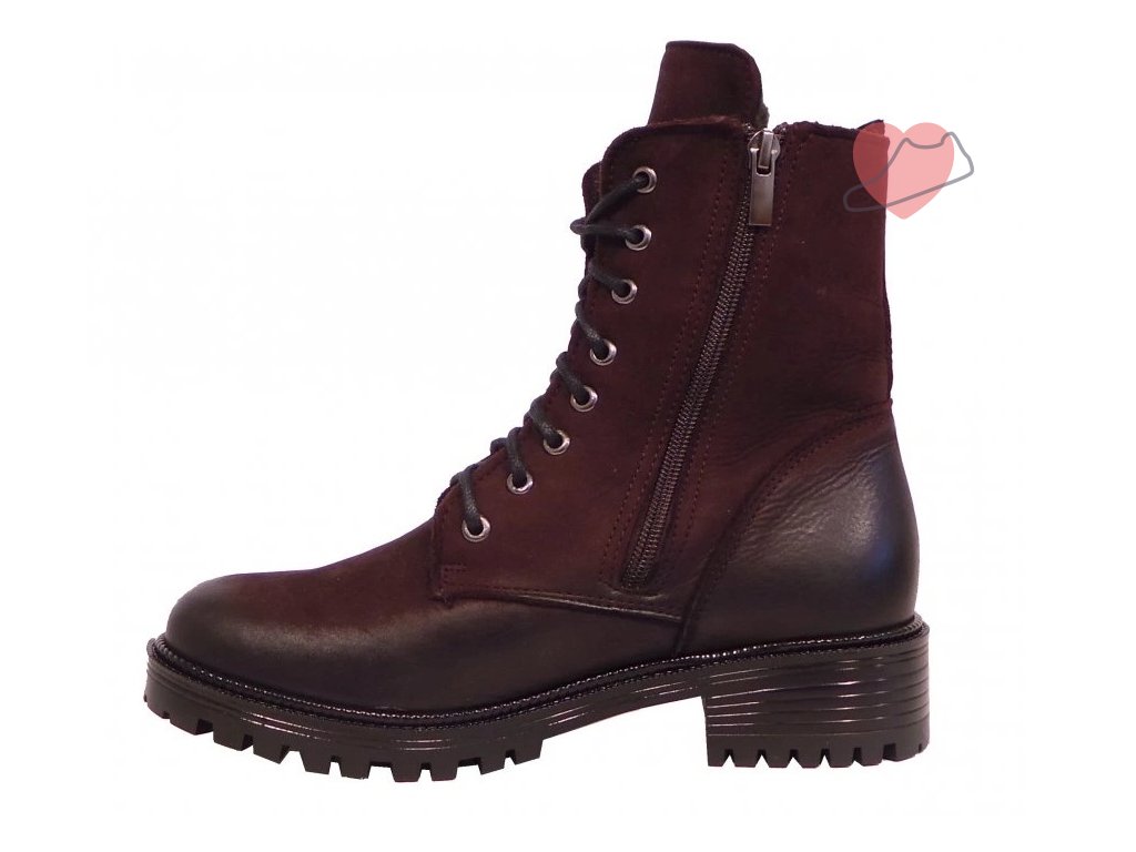 Dámské zimní boty v bordo barvě se zavazováním na tkaničku a postranním zipem. Svršek je vyroben z pravé kůže. Podšívka a stélka jsou zatepleny hřejivým beránkem. Podpatek cca 4 cm.