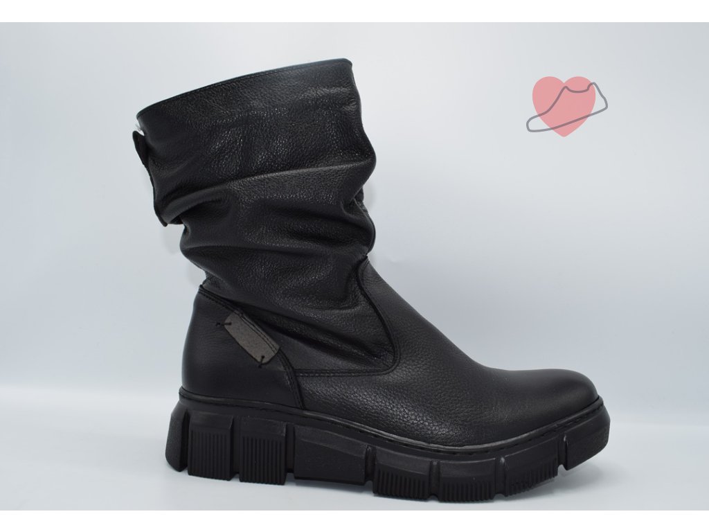 Dámské elegantní nižší kozačky v černé barvě. Svršek je vyroben z pravé kůže. Podšívka a stélka jsou zatepleny hřejivým fleesem. Zapínání je na zip. Výška podpatku je 5 cm.