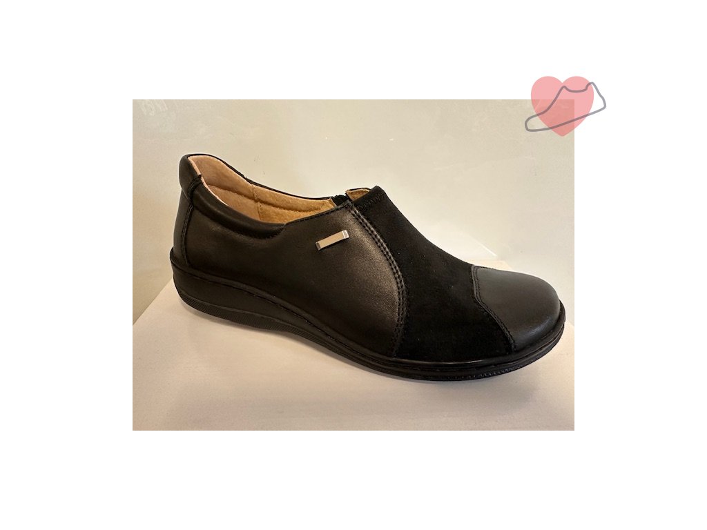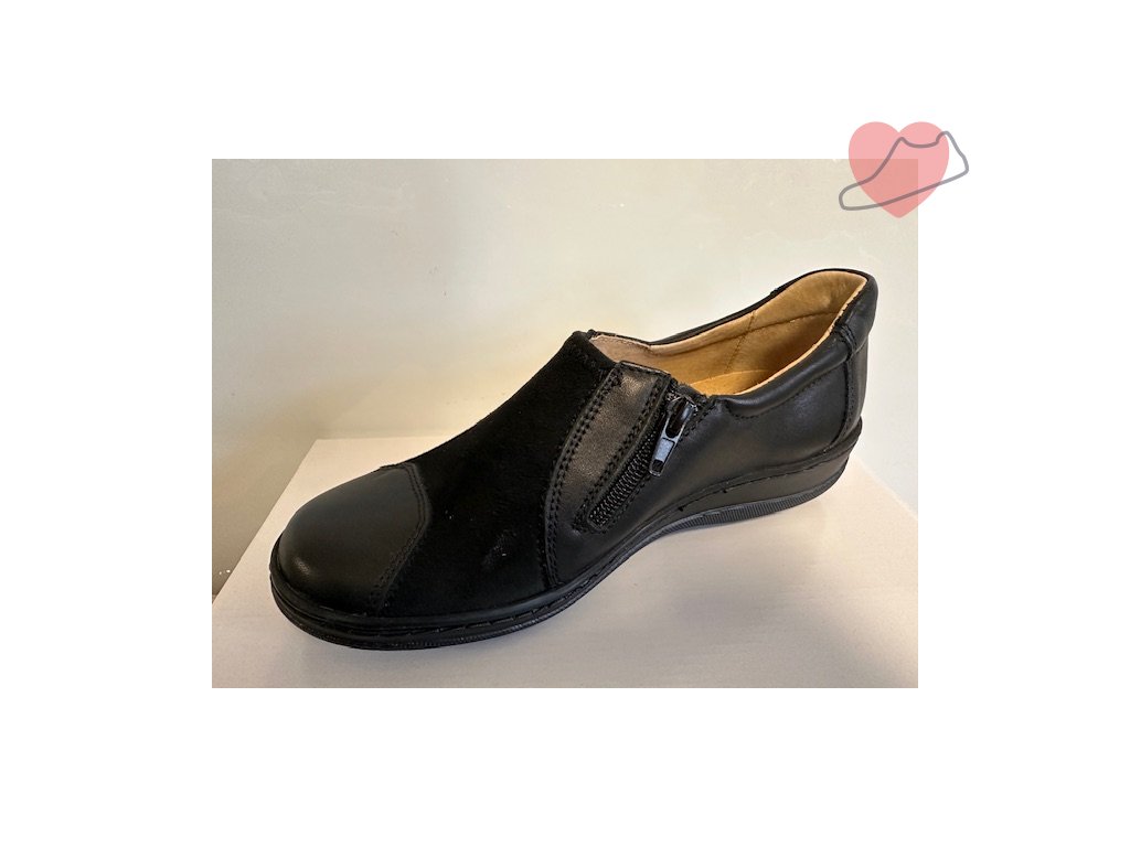 Dámská kožená nazouvací celoroční obuv na pohodlné podešvi. Obuv je lehká, pohodlná a má vyměkčenou koženou stélku. Ideální pro každodenní chůzi. Snadné nazouvání díky postrannímu zipu. Obuv má speciální pružnou část se speciální úpravou na bolestivé kůstky. Je tedy vhodná pro vbočený palec - hallux valgus. Lehká podpora podélné klenby.