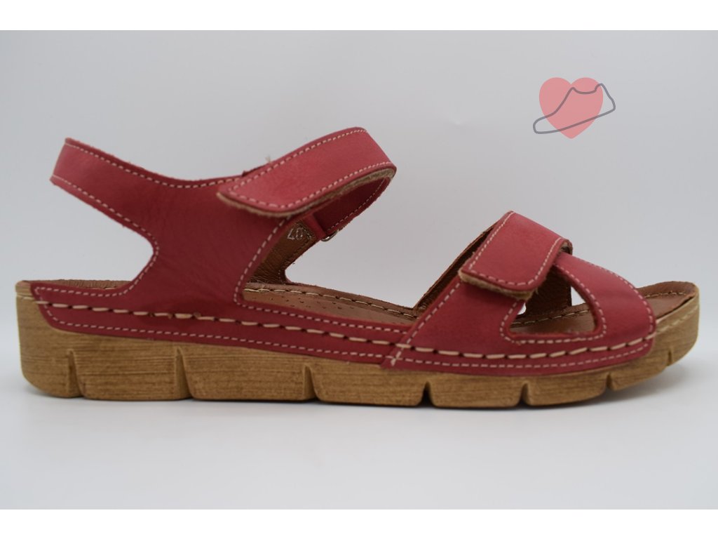 Dámský celokožený sandál na klínku. Zapínání na suchý zip. Vyměkčená podešev s podporou příčné klenby zajistí komfort pro Vaše chodidla při celodenní chůzi.