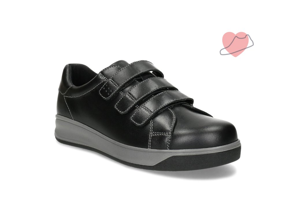 Celoroční diabetická obuv, hladká useň, šněrování, odlehčená, odpružená podešev s vylepšenými protiskluznými vlastnostmi. Díky třem páskům na suchý zip dokonale padne.