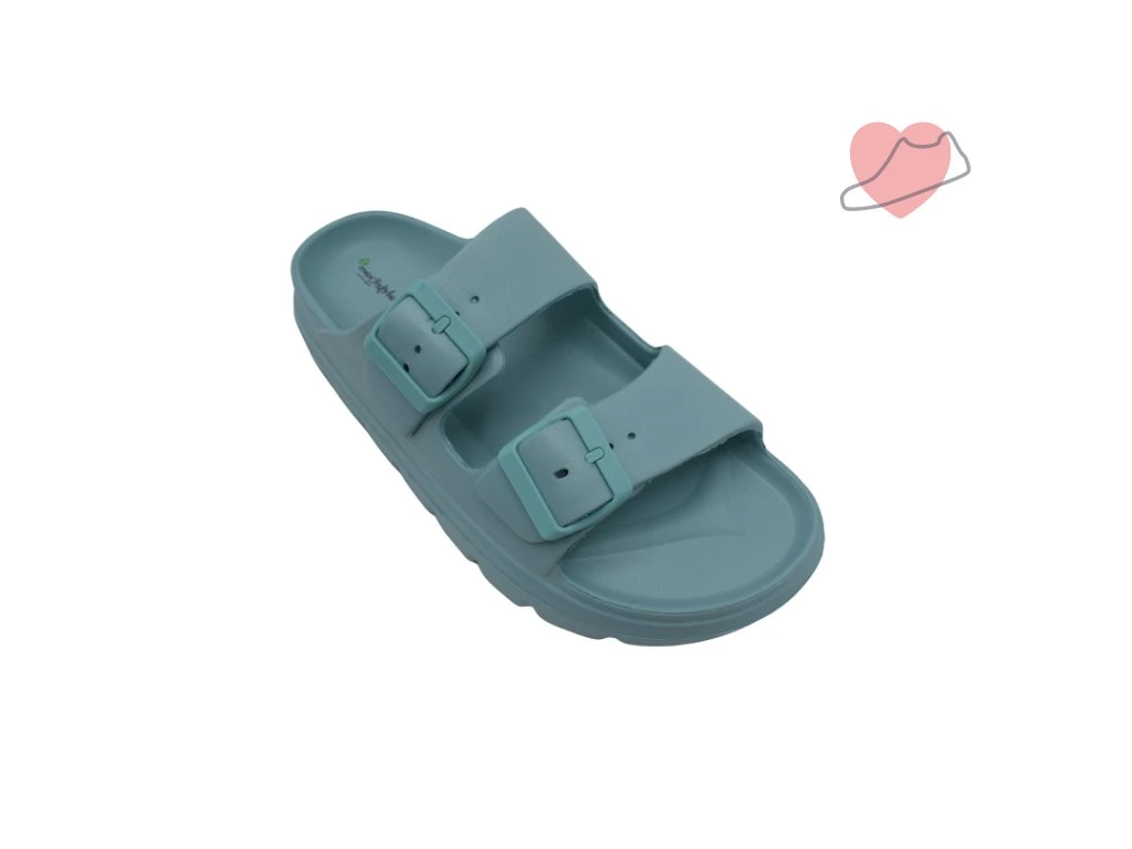 Dámský plastový pantofel vhodný na ven, jako pracovní obuv nebo na doma. Regulace šířky dvěma přezkami. Anatomicky tvarovaná stélka.