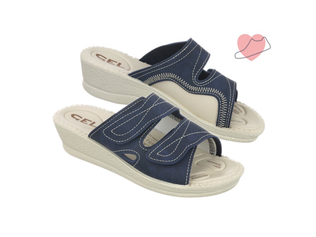 Dámské gelové pantofle mají měkkou gelovou stélku, která tlumí každý došlap chodidla. Jsou proto skvělou volbou jako letní vycházková obuv, ale i jako přezuvky na doma nebo do práce. Dotažení na dva suché zipy. Z vnitřní strany jsou pantofle opatřeny strečovou tkaninou, pro vynikající pohodlí pro lidi s různými deformitami chodidel - zejména pro stav "Hallux Valgus", lidově známý jako "vbočené palce".