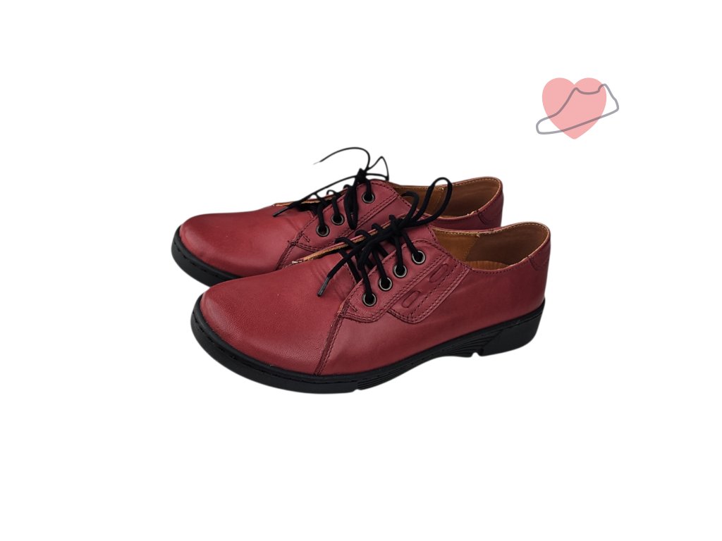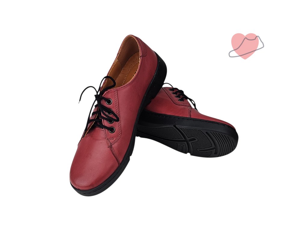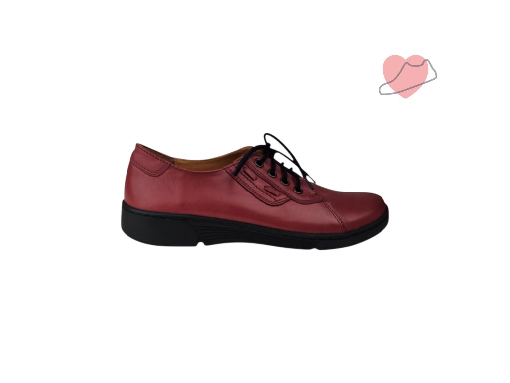 Dámské polobotky na tkaničku z měkké kůže a s pohodlnou měkkou stélkou se srdíčkem. Lehká podpora podélné klenby. Boty jsou z měkké kůže, dostatečné prostorné, vhodné i pro halluxy.