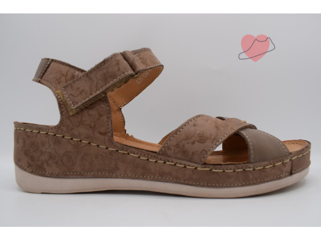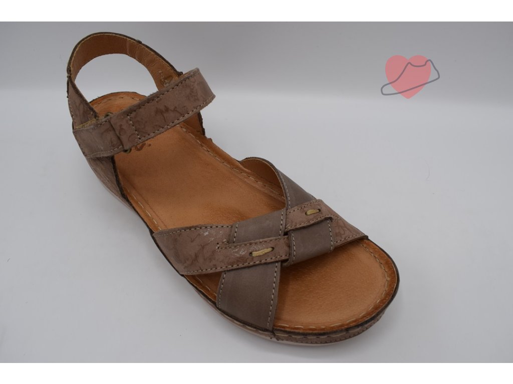 Dámský celokožený sandál na klínku. Zapínání na suchý zip. Vyměkčená podešev s podporou příčné klenby zajistí komfort pro Vaše chodidla při celodenní chůzi.