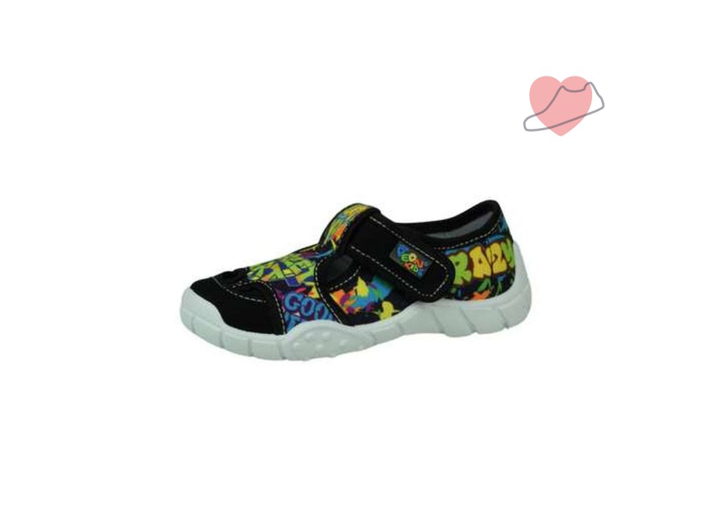 Chlapecké plátěnky s jednoduchým upínacím páskem na suchý zip jsou ideální jako školní přezůvky nebo domácí obuv. Přezůvky se díky pásku snadno nazouvají. Podešev je odolná proti uklouznutí a díky drobným otvorům v podešvi a vyjímatelné kožené stélce s aktivním uhlím jsou tyto botičky dobře prodyšné a odolné proti bakteriím. Lehká podpora podélné klenby zajistí hygienické a zdravé obutí.