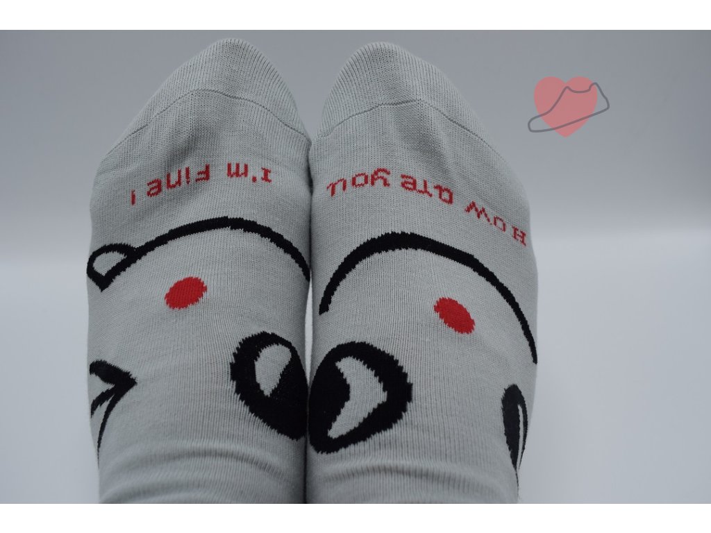 Dámské ponožky ke kotníkům se smajlíky. Zesílená pata i špička. Pohodlný lem, který netlačí. Ponožky neškrtí, nesjíždí a dobře se nazouvají. Cena je za 1 ks. Dodání dle aktuálních skladových zásob. Barva červená, šedá, béžová.