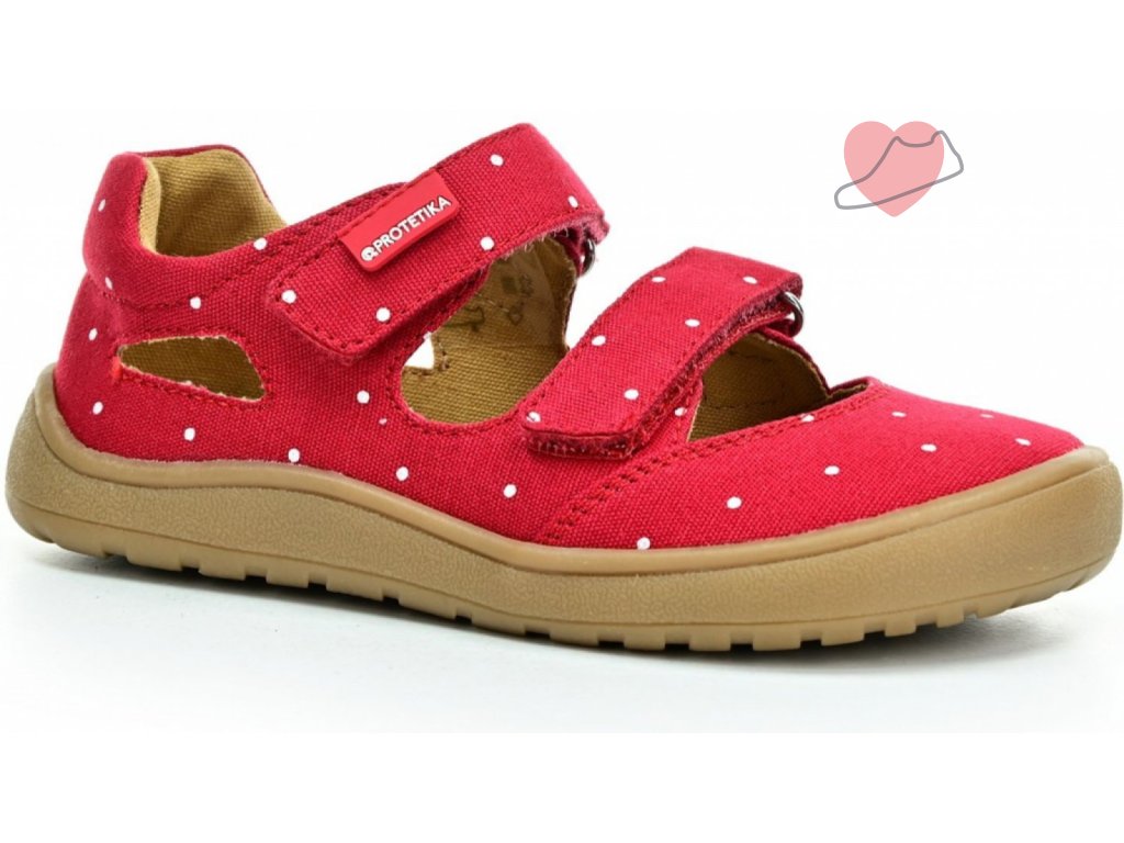 BAREFOOT sandálky značky PROTETIKA jsou textilní prodyšné sandálky. Obuv má flexibilní podešev ve směru chůze a zpevněnou patu, špička je anatomicky tvarovaná a zaručuje dostatek místa pro prsty, vhodná i pro dominantní palec. Zapínání na dva suché zipy, které se krásně přizpůsobí nártu a samozřejmostí je zvýšená okopová špička. Vnitřní část je kožená s vyjímatelnou koženou stélkou (netvarovaná).