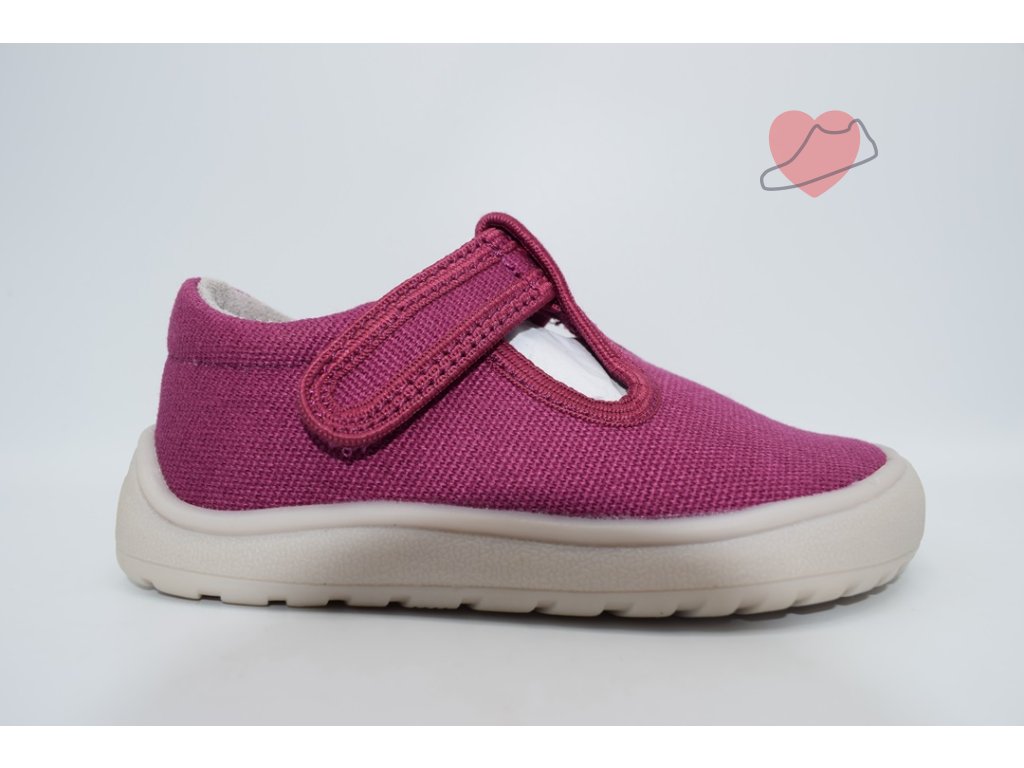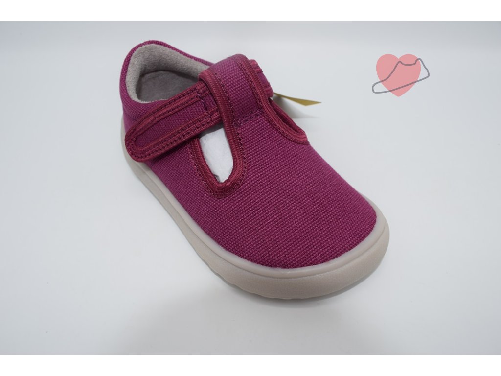 Plátěná barefootová obuv pro holky. Zapínání na suchá zip. Špice je chráněna proti okopu. Obuv lze využít jako letní plátěnky nebo jako přezůvky do školky, školy nebo na doma. Bačkory jsou opatřeny barefoot podrážkou, která zajišťuje o co největší komfort dětí při chůzi. Přírodní prodyšný materiál obuvi garantuje zdravotní nezávadnost.