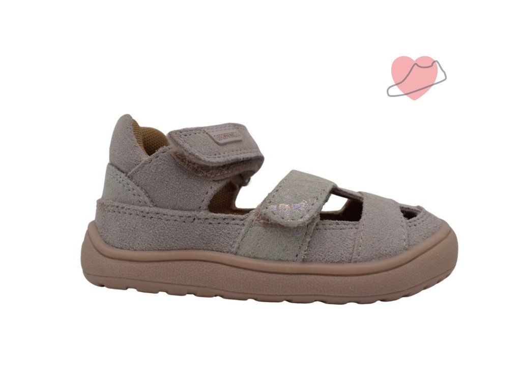 Dívčí barefootové sandály regulovatelné zapínáním na suchý zip. Krytá špička a pevná pata zabezpečí pro nohu dostatečnou oporu pro její rozvoj. Sandály jsou vypolstrované a mají koženou stélku bez podpory klenby.