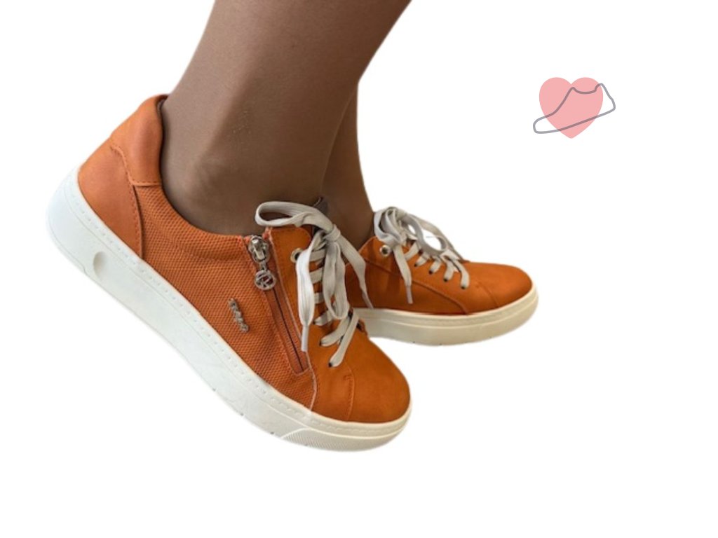 Dámské atraktivní nízké tenisky značky Relife jsou ideální pro různé příležitosti ve svěží oranžové barvě. Měkká stélka poskytne pohodlí pro Vaše chodidla po celý den. Tlumící reflexní systém odlehčuje tlak na páteř. Zavazování na tkaničky a zapínání na postranní zip. Šíře G, tedy vhodné pro normální nohu.