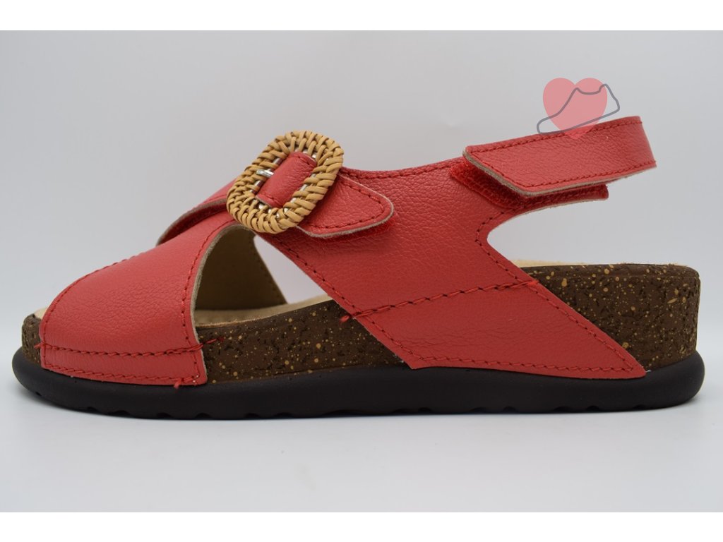 Dámský celokožený sandál na klínku. Zapínání na suchý zip. Vyměkčená podešev s podporou příčné klenby zajistí komfort pro Vaše chodidla při celodenní chůzi.