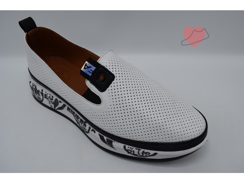 Dámské kožené nazouvací tenisky značky Santé s elegantní perforací a popisem na podešvi, které zaujmou na první pohled.