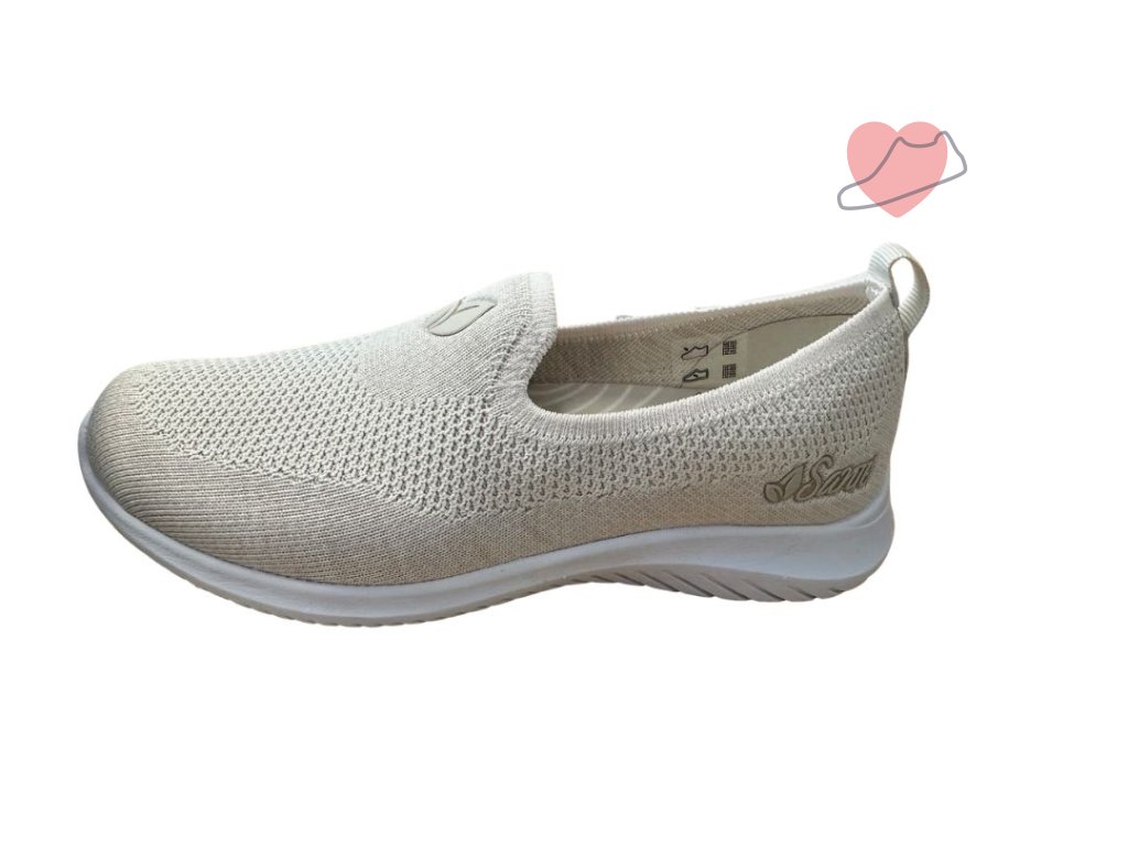 Dámská béžová textilní obuv s měkkou stélkou a pohodlnou flexibilní podešví. Ideální obuv pro celodenní chůzi.