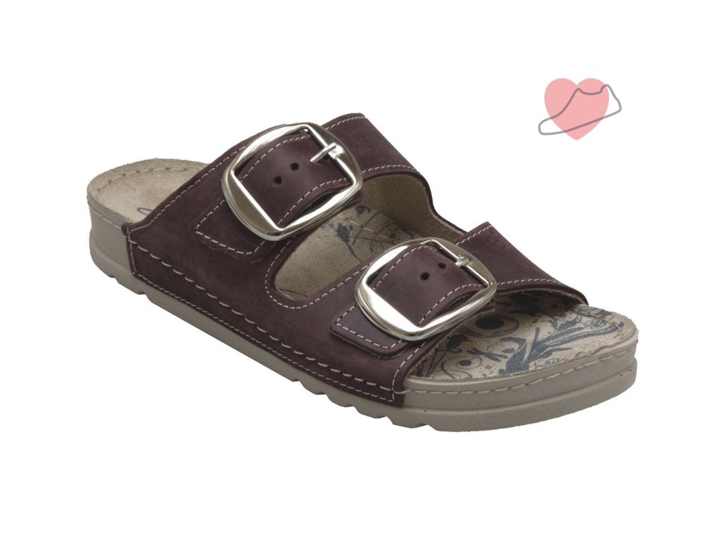 Dámské pantofle Santé s koženou stélkou mají anatomický tvar, který podporuje podélnou i příčnou klenbu. Navíc je velmi vyměkčená, takže Vám zajistí pohodlí při každém kroku. Nártové pásky jsou flexibilní díky dvěma kovovým přezkám.