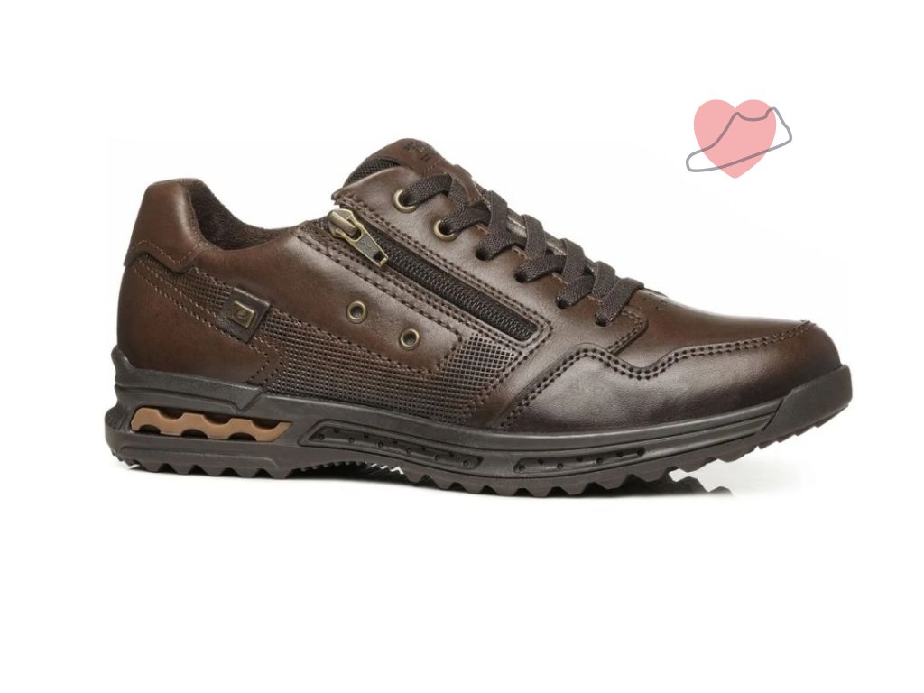 Pánská kožená vycházková obuv s pohodlnou vyjímatelnou stélkou na gumovou tkaničku. Hlavní předností je technologie AMORTECH BLUE MEMORY FOAM ve vložce, která obsahuje tlumič, přizpůsobující se konturám nohy a vracející se do původního tvaru, čímž snižuje nárazy v oblasti paty a poskytuje maximální pohodlí po celý den.
