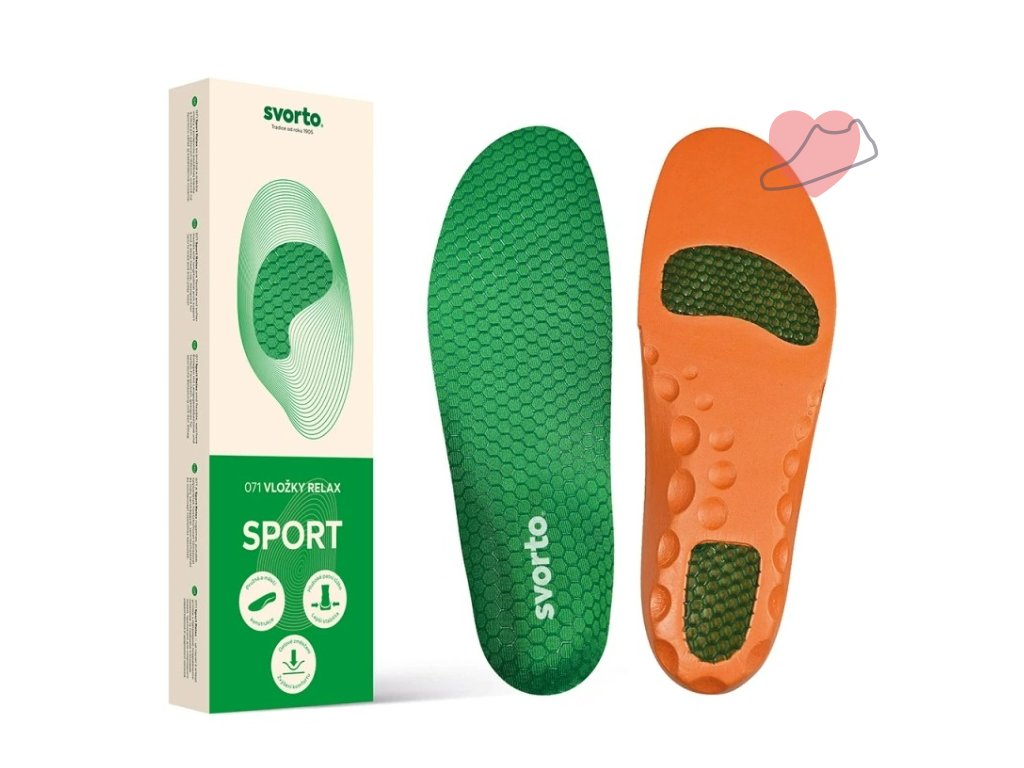 Sport Relax jsou vložky navržené pro uživatele, kteří vyžadují vyšší míru pohodlí a úlevy při sportu i každodenní chůzi. Jejich pružná a měkčí konstrukce v kombinaci s podporou podélné klenby a hlubokým patním lůžkem přispívá k lepší stabilitě chodidel i celého těla. Díky tomu pomáhají zmírnit únavu nohou a zlepšit biomechaniku pohybu i při delší zátěži.