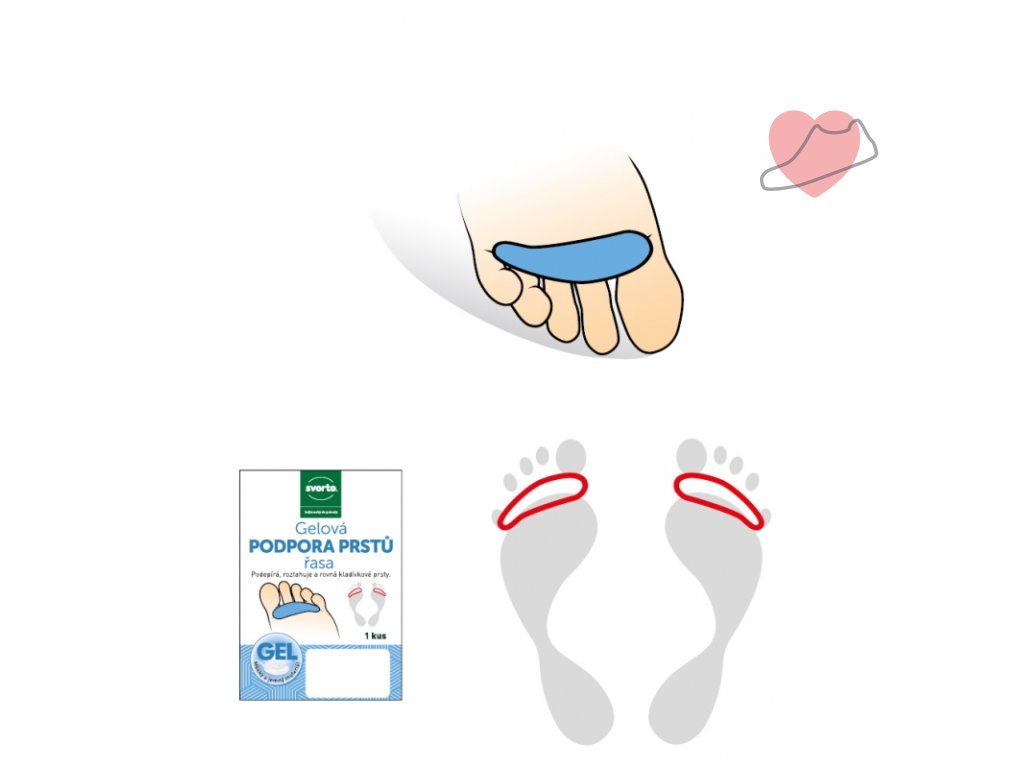 Vložením řasy pod prsty zabraňujeme jejich sevření a zhoršování deformace kladívkových prstů. Prsty zůstávají v přirozené poloze a nenarážejí do obuvi, prevence vzniku otlaků a kuřích ok. Tvarování zvlášť pro levou a pravou nohu.