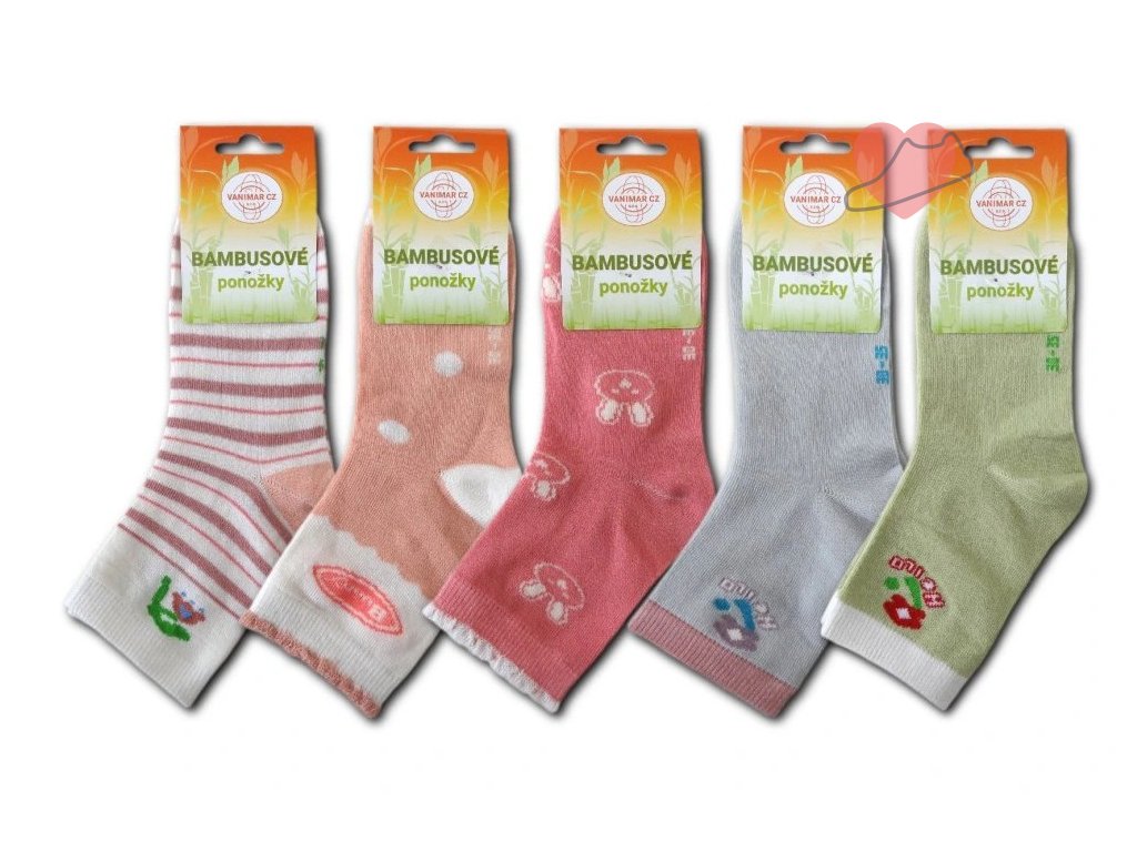 Dívčí kotníkové ponožky se zesílenou špicí a patou, velmi příjemný lem, který netlačí. Ponožky jsou v dívčím vzoru. Konkrétní vzor dodáváme dle aktuálních skladových zásob.