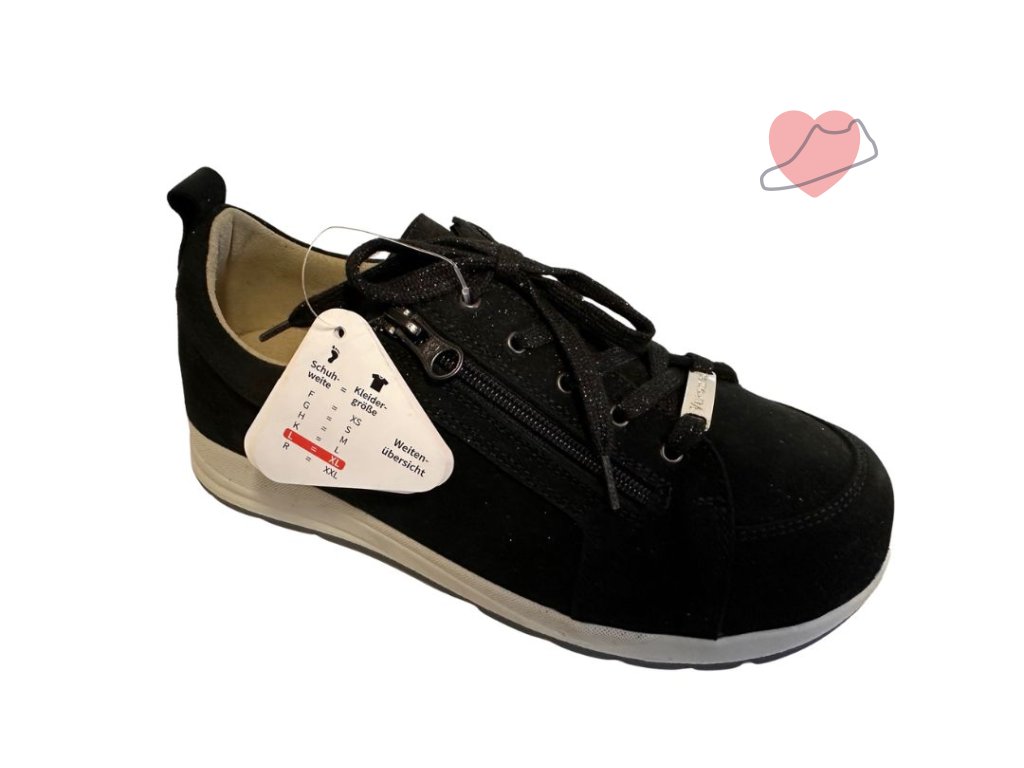Diabetická obuv kde je kladen důraz zejména na výšku špičky. Hrana a jazyk obuvi jsou polstrované a v případě potřeby poskytují široký otvor pro snadné nazouvání a vyzouvání obuvi. Speciální podšívka pro diabetiky (bezešvý a prodyšný materiál pro příjemné klima nohy). Anatomicky tvarovaný nárt nabízí dostatečný prostor pro jiné deformity chodidla jako např. hallux valgus, drápovité prsty, jezdecké a kladívkové prsty. Dostatečný prostor pro umístění vložky. Model má šířku K a je vhodný pro široké nohy. Obuv je lehce třpytivá, vhodná tedy pro dámy. Možnost příspěvku na diabetickou obuv přes pojišťovnu.