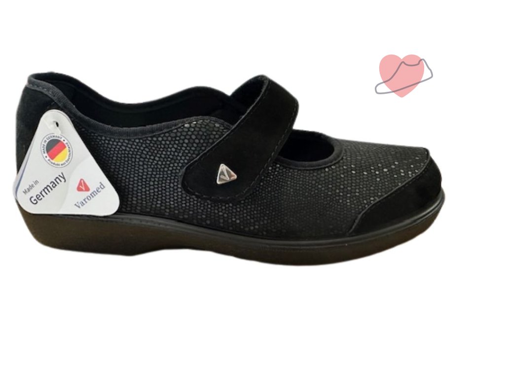 Nízké prodyšné lehké balerínky značky VAROMED, ideální model pro lidi, kteří hledají pohodlí pro své nohy. Tyto balerínky jsou zvláště vhodné pro širší chodidla nebo pro citlivá chodidla. Suchý zip usnadní obutí. Šíře obuvi je H. Botu lze dotáhnout pomocí suchého zipu. Zpevněná pata podrží kotník. Stélku lze snadno vyjmout a nahradit ji tak ortopedickou stélkou. Stélka má lehce tvarovanou anatomii - srdíčko a podélná klenba.