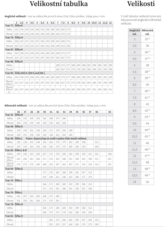 Velikostní tabulka Varomed