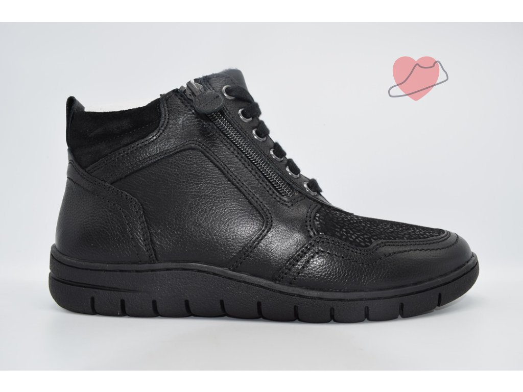 Dámská kožená zimní kotníková obuv značky Wild s postranními zipy, které usnadní ubutí. Dotažení na tkaničku. Vevnitř zateplena. Obuv má pružnou vsadku v oblasti palce a je vhodná na halluxy. Vyjímatelná stélka.