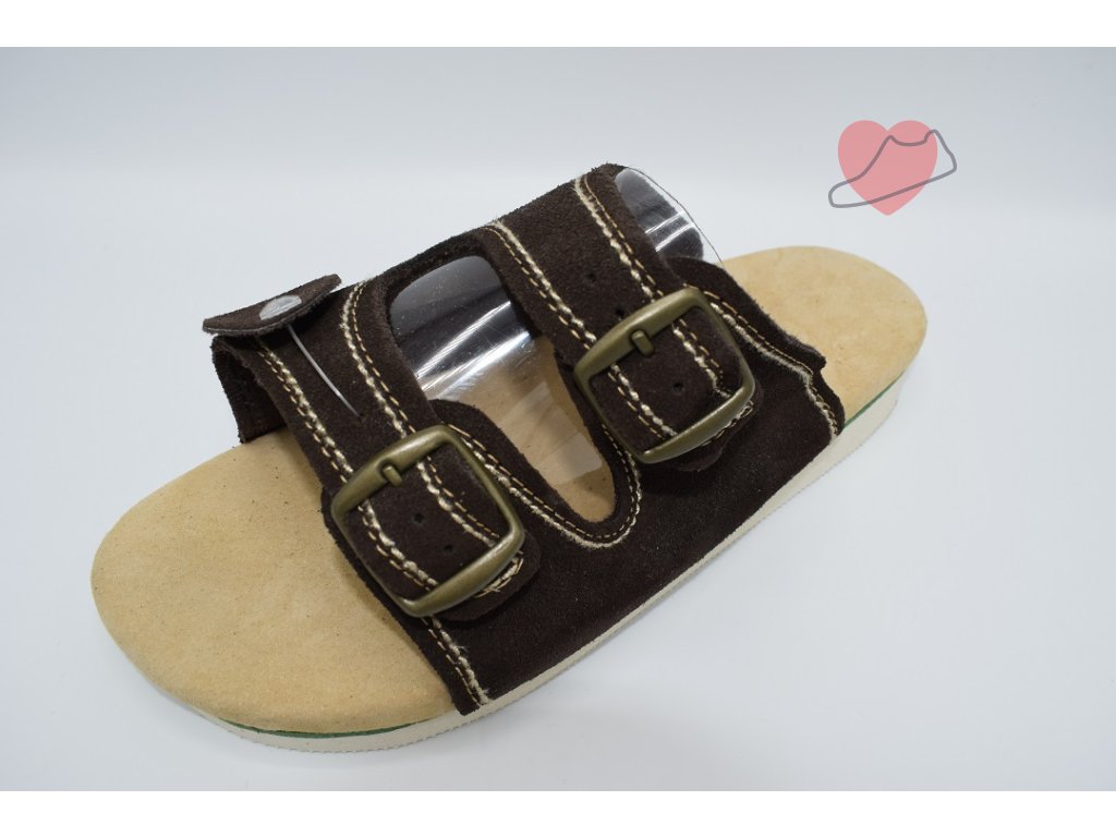 Vyměkčený pantofel vhodný i pro diabetiky. Tento kožený model doporučujeme i na delší stání. Výrazně delší pásky oproti běžné obuvi. Barva tmavě hnědá.